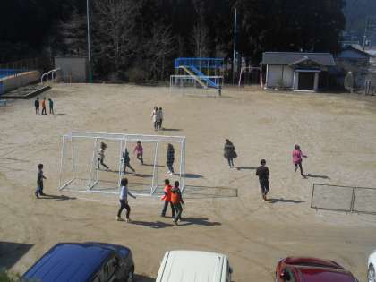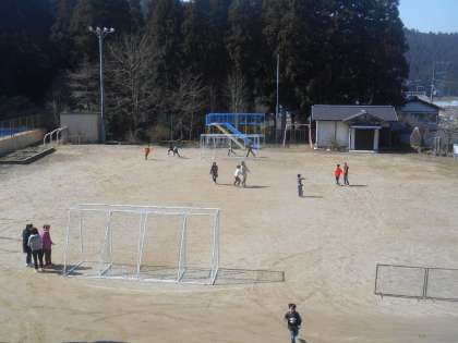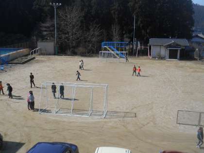 ついこの間、雪がドカッと積もった運動場が、同じ週にまるっきり違う運動場に変わりました。児童は休み時間に、元気に、楽しく遊んでいました。