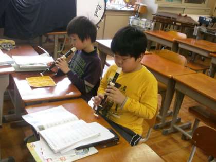 今日の5時間目に,6年生を送る会に向けての活動を行いました。6年生にどんなメッセージを伝えるかを話し合ったり,出し物で行う予定のリコーダー練習をしたりしました。送る会では,ある曲を上と下のパートに分かれて演奏します。1年間,お家でもリコーダーのがんばってきたこともあり,リコーダーがきれいにふけるようになってきました。