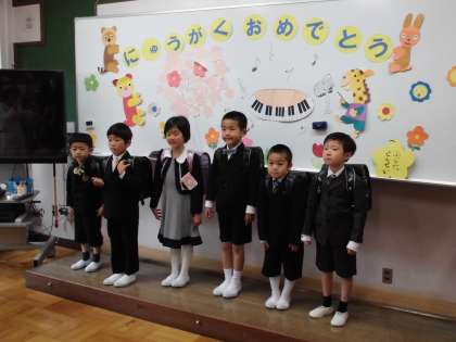 入学式を終えて、1年生は早速教室に入り、担任の先生のお話を聞いたり、教科書をいただいたりしました。にぎやかな1年生教室になりそうです。