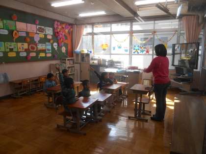 朝の会で、健康観察をしますが、それにプラスして、朝食で食べてきたものも発表します。「ご飯を食べてきました。」などです。そのあとに、○○さんの食べてきたものは何でしょう?という質問があります。聞く目的が分かっているので、児童はしっかり聞こうとします。しっかり聞いてもらえるので、しっかり話そうとします。朝ごはんにも関心を持つことができます。児童は楽しく、話すこと聞くことを一生懸命に取り組んでいました。確実に続けることで、1年生の基本的な話を聞くことや話すことが身に付いていきます。