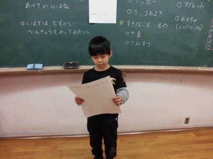 2年生になっても朝の時間は自分で絵本を手に取り,読書する姿がありました。指示がなくても自分でやるべきことがわかって行動している一場面だと感じ,とてもうれしく思いました。また,「2年生になったぼく」として目標を考えたり,自己紹介をしたりしました。紹介では前に出てしっかりと発表することができました。