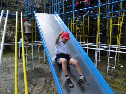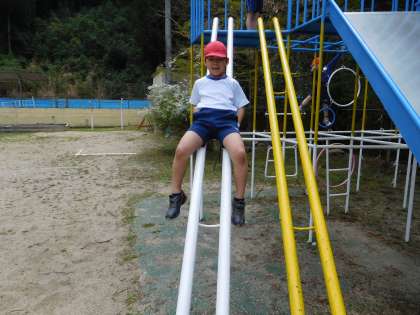 「ゆうぐであそぼう」の学習では,最初に注意事項を確認し合い,安全に気を付けながら取り組みました。2年生になって初めてできたことがあります。それは,2本の棒を使ったすべり棒に挑戦し,うまくすべることができたことです。やり終えた後は,「楽しかった」とできることが一つ増えたことを喜んでいました。