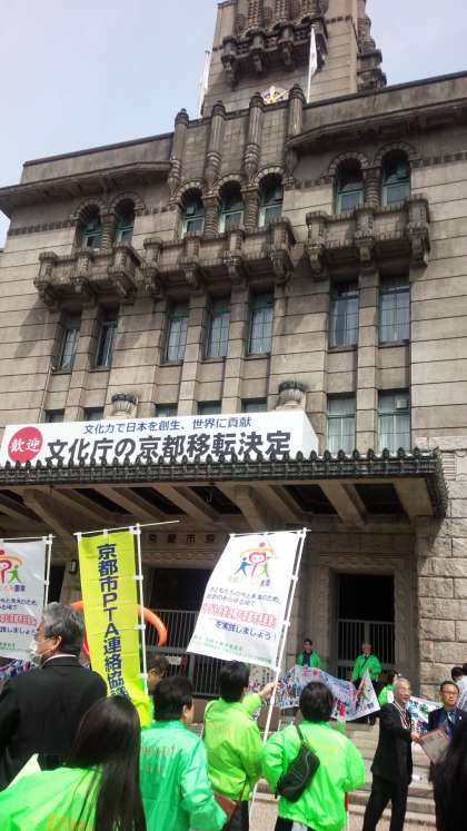 4月16日(土)に平成28年度憲法月間人権啓発パレードが行われ、静原小学校から2名が参加しました。市役所前に集まり、そこから河原町仏光寺の京都市総合教育センターまでパレードを行いました。その間、次のようなシュプレヒコールを行いました。