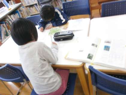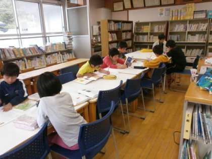 今,3・4年生ではじゃがいもを育てています。今年は,育てるだけではなく,「じゃがいもの〇〇」について自分で課題を決めて調べ学習も行います。先週決めた自分の課題を,図書館にある本を使って調べました。「じゃがいもの本」という本を使って調べている子もいれば,図鑑を使って「じゃがいもの品種」を調べたり,料理のレシピが書いてある本を使って「じゃがいもの料理」を調べている子もいました。「日本や世界のじゃがいもの生産地」をランキング形式で調べている子もいました。どんどん調べて,「じゃがいも博士」になってほしいと思います。