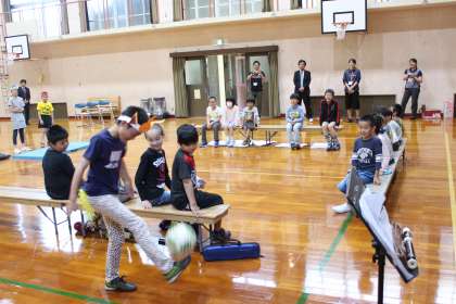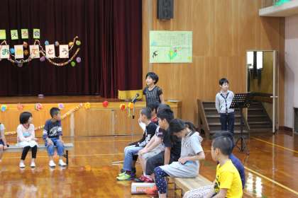 5年生は高学年として,飾り付けや入場,終わりの言葉など役割を分担して頑張りました。学年の発表では,1年生に楽しんでもらおうと,妖怪ウォッチの妖怪になって自己紹介と特技を披露しました。体操・サッカー・ピアノ・なわとびと,どれも1年生は目を輝かせてみてくれました。