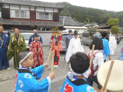 お祭りに参加しているだけのようですが、御幸持ちがいないとお祭りはうまくいきません。御幸持ちや太鼓、神輿などにぎやかに行列が進むのを見られる人々は、楽しい雰囲気になりますし、もしも、なければ、がっかりされることでしょう。お祭りに参加していくことは、静原を盛り上げていくことにつながっています。そのために、いろいろな方々が準備をされますし、太鼓については、練習も必要です。その結果、人々の笑顔につながっています。