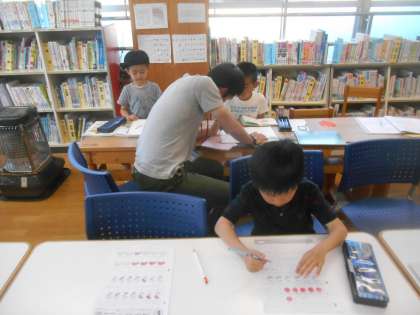 まなび教室と家庭,担任,もちろん本人が学習内容を共通理解して進められています。まだ、1年生は文字もたくさん学習していませんし、計算も基礎の基礎です。それでも学習に臨む習慣は、連携の元、着々とついていっています。