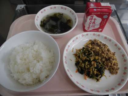 ごはん 牛乳 ビビンバ(具) わかめスープ
