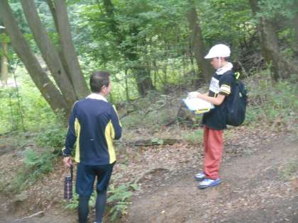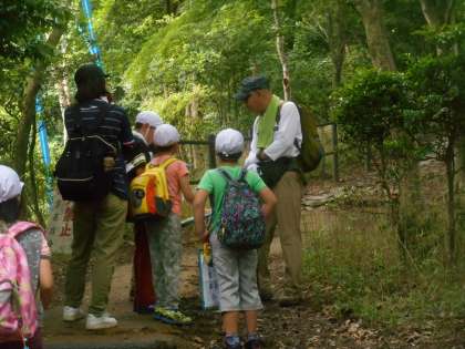 大文字山から見えるものを探して見つけるのも課題です。双眼鏡で確認したり地図と照らし合わせたりして、確かめました。インタビューの中で、おすすめのものとして、アベノハルカスをあげられる方が多かったですが、「今日は見えへんけど、毎日登ってたらみられるで〜」とのことでした。妙、法も確認していました。左大文字も見つけています。