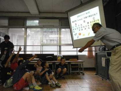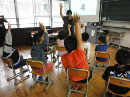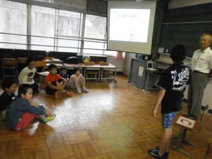今日の3・4時間目の総合的な学習の時間に,3・4年生で「エコライフチャレンジ」の学習を行いました。気候ネットワークの方々に来校していただき,地球温暖化とはどのようなことなのか。このままだと地球の温度はどのように変化していくのか。自分たちにできることは何か。について,資料や映像を見せていただいたり,クイズ形式で考えたりしながら楽しく教えていただきました。このままだと100年後には,地球の平均気温が6度以上高くなるという話を聞き,みんなとても驚いていました。夏休みには,それぞれが家庭でできることに取組みます。今日の学習を活かして,家庭でもできることに取組んでほしいなぁと思います。