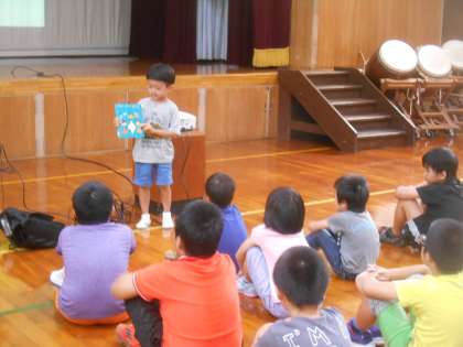 100冊を越えた児童が、おすすめの本の紹介をしました。声の大きさもよく、本のここだというところを的確にさして説明したので分かりやすく話せました。