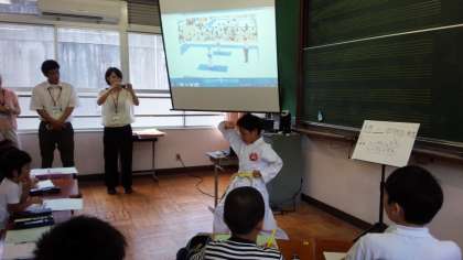 今日の1時間目に静原タイムが行われました。静かに全員が着席していると、チャイムと同時に担当の先生ではなく、司会の児童がすっと立ち上がり、静原タイムが始まりました。今日は、1年生の英語を頑張っているお話、3年生の空手を頑張っているお話、4年生のお城めぐりを楽しみにしているお話、そして、給食調理員さんの好きな読書の話がありました。実際に英語を話したり、空手の型をやって見せたり、今まで行ったことのあるお城の解説をしたり、本の紹介をしたり、とっても心温まる素敵な時間でした。