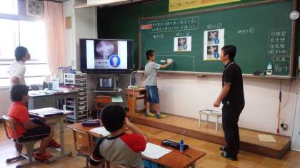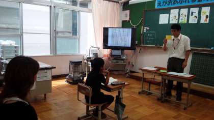 自由参観には、多くの保護者の方に来ていただき、子どもたちは嬉しそうに過ごしていました。どの教室でも、子どもが実験していたり、作品を作っていたり、黒板に自分の考えを描いて説明したり、道具を使って考えたり、積極的に学ぶ姿が見られました。
