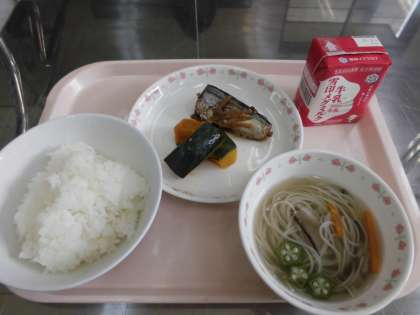 ごはん 牛乳 さんまのかわり煮 かぼちゃの煮つけ 七夕そうめん