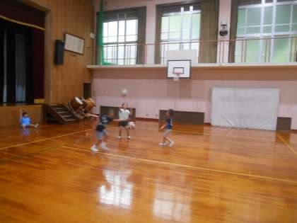 雨の日は、体育館で、ボールを十分に使って遊べます。バレーボール風の練習のような遊びをする児童がこの日は、多かったです。