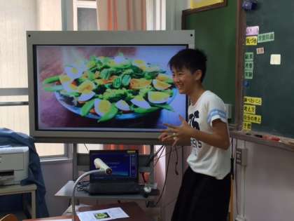 家庭科でゆでる調理について学習したことを生かして,一人一人がオリジナルサラダを考え,実践しました。とてもよく工夫されていて,とてもおいしそうなものばかりでした。「家族の人にもとても喜んでもらえたよ。」とうれしそうに話をしていました。