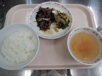 ごはん 牛肉とひじきのいため煮 伏見とうがらしとじゃこのたいたん とうがんのくずひき