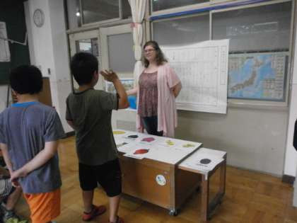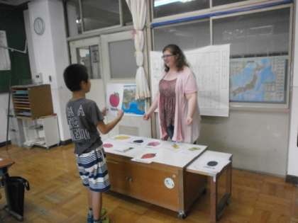 今日の3時間目の総合的な学習の時間に,FSさんに来ていただき,英語活動を行いました。今日は,10種類の食べ物のカードから,好きなメニューを3つ選び,FSさんからカードを受け取ったり,正しい発音を聞きながら,キーワードゲーム等を行い,発音したりといった学習を行いました。これまで,「What card do you want?」のやりとりを行っていたこともあり,積極的にFSさんと関わろうとする姿が見られました。英語活動を通して,いろんな人とコミュニケーションをとれるようにもなってほしいと思っています。