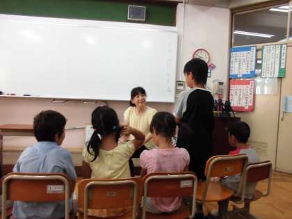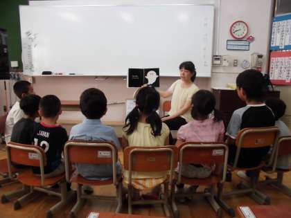 1・2年生への朝の読み聞かせがありました。「ばけたくん」というタイトルの絵本で,次のページをめくるのが楽しみな絵本でした。終わった後は,感想を発表しました。シリーズになっている本なので,ぜひ,他の本も読んでみてほしいと思います。