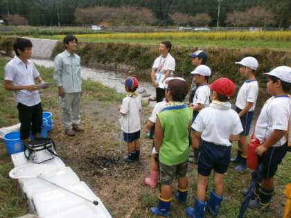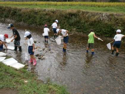 今日の3・4時間目に,3・4年生合同で静原川の水質調査を行いました。京都府保健環境研究所の方に来ていただき,パックテストを使ってCODを調べたり,静原川に住む生き物を見つけたりして,静原川がきれいな川なのかを調べました。同じ静原川ですが,昨年度とは違う場所での調査だったこともあり,昨年度見つけ,調べた生き物以外の生き物を見つけることができました。今年度も,近畿子どもの水辺交流会に参加します。交流会に向けて,静原川についての学習を進めていきたいと思います。