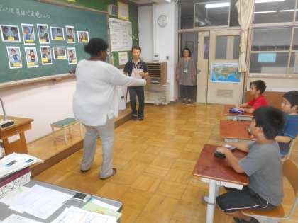 4年生も担任が主体となってALTと共に授業をすすめています。スポーツの名前をカードを作り準備をしていたので、児童はそのスポーツの絵や動作を見ながら楽しく英語に親しんでいました。