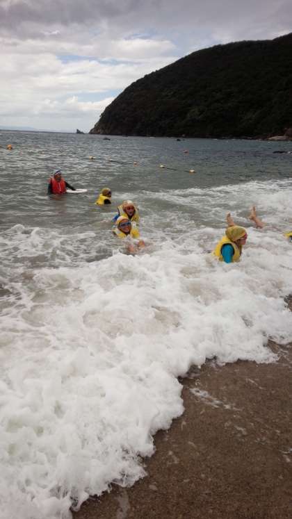 海の活動。波にうまく乗って楽しんでいます。
