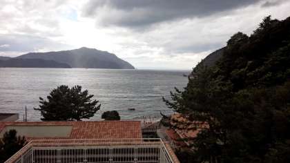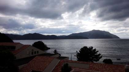 海、夕暮れ近く。子どもたちは波のりを終え、少しのんびりタイムです。