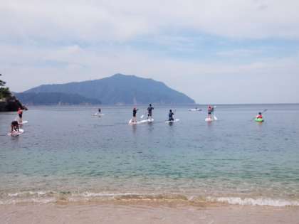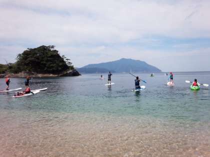 休憩を終えたあと全員揃って違う浜に向かって出発しました。あっという間に沖の方まで行ってしまいました。