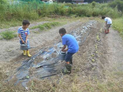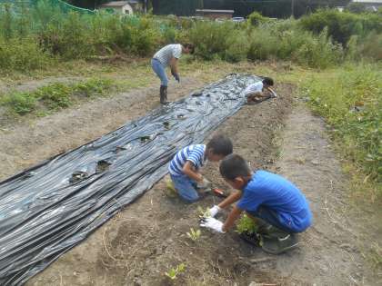 白菜、キャベツ、ブロッコリーを植えました。肥料を入れて耕し、マルチをはるなどの作業もがんばりました。