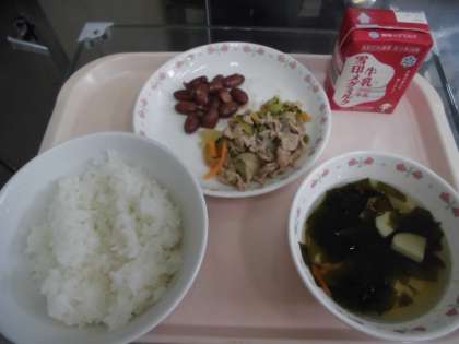 ごはん 牛乳 豚肉とゴーヤのしょうがいため 金時豆の甘煮 すまし汁