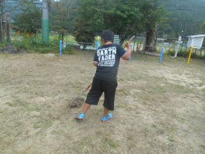 草ひき、草刈りの後の草を集めて、乾燥しているうちに、燃やしました。草ひきのできていないところで燃やすと草ひきの手間が少しは減るのとゴミの量が減ること、ジャガイモのタネイモの切り口に付けるの等活用できるであろうという事で活動しています。