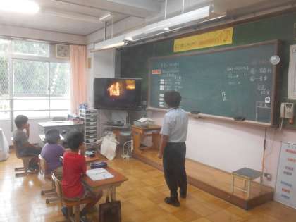 消防の仕事の学習を始めています。どのようなことが必要なことかのイメージをもって学習がスタートします。映像を見ると分かりやすいです。