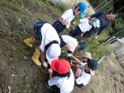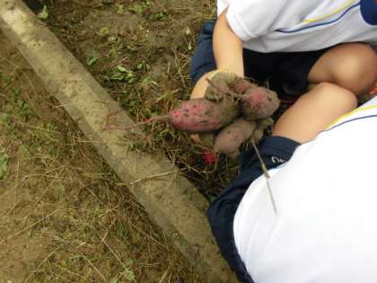1年生花壇のいも掘りをしました。花壇片づけもしました。