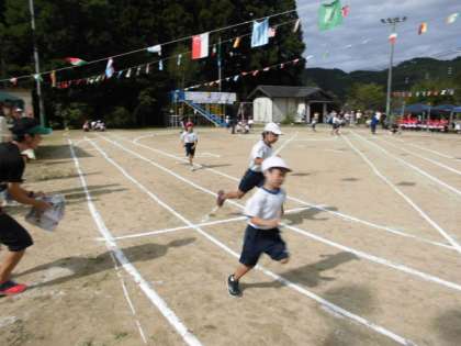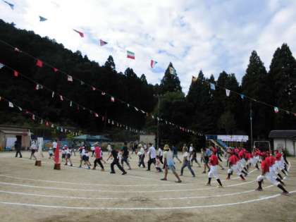 地域の方々、保護者の方々と一緒に、準備運動をしました。個人層は力いっぱい走りました。