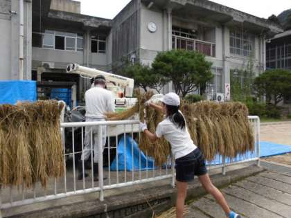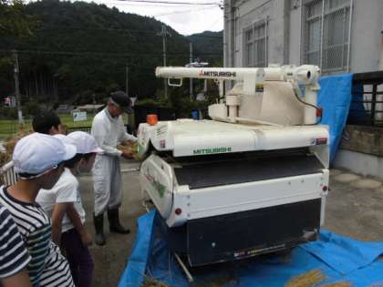 籾はずしを機械奈良あっという間にやっていきます。昨年よりも,たくさん取れたようです。