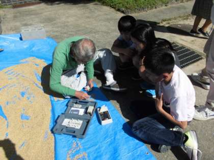 天気も良くなり、天日干しをしました。水分量を量っていただきました。ちょうど良いくらいなので、片付けました。