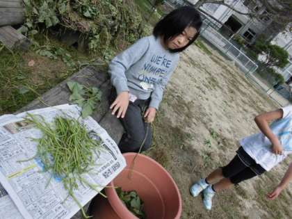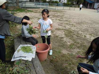 いもほりの後の、芋づる処理をしています。葉っぱは、うさぎのエサになりました。有効活用を進んでやっていきます。