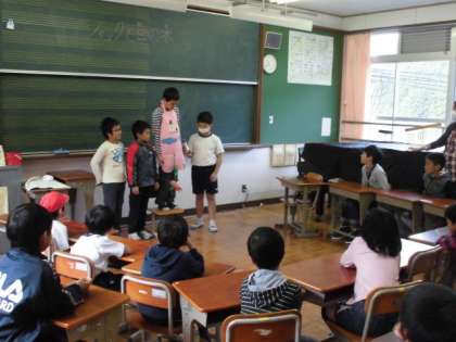 楽しくエプロンシアターを見ることができました。児童が進んで企画して、取り組むものは、発表も意欲的になります。