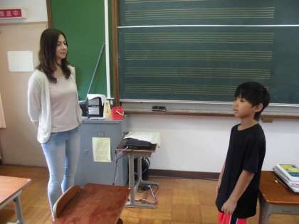 外国語指導助手(FS)も参加し,音楽「いろいろな音を楽しもう」を学習しました。初めに自己紹介やあいさつをしたことで,緊張もほぐれ,一緒に楽しく音遊びを楽しんでいました。学習の終わりには「楽しかった。」という感想をもっていました。
