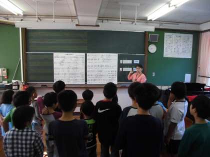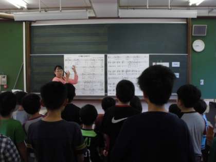 息継ぎの仕方、声の強さ、伸ばし方、声の出し方に気をつけて、練習しました。きれいな歌声になっていきます。