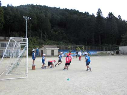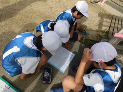 ポートボールを楽しんでいます。チームで振り返りや作戦を考えることもしています。考えを書くことも体育です。考えの交流やチームでの考えをまとめて実行に移していきます。