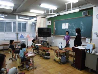 秋についてのイメージを言葉で表します。秋をイメージするものを発表し合い、その中から自分の気に入ったもの、自分の生活とあわせて、文を作って発表しました。