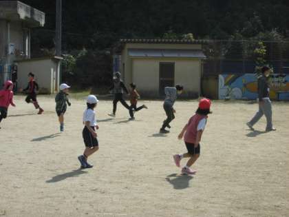 中間休みは、みんなで遊ぶ取組を児童中心に進めています。この日は、てつなぎ鬼を楽しんでいました。