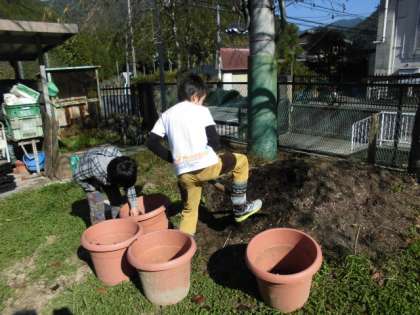 土曜学習では、自学自習もしますが。農業体験もします。エンドウ豆の苗を植える作業をしました。エンドウ豆、スナップエンドウ、きぬさやの3種類を植えました。