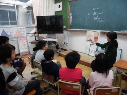 植木鉢の楽しいお話を読んでいただきました。花と鼻、目と芽がかけてあるなど同音異義語の面白さにもふれることができました。