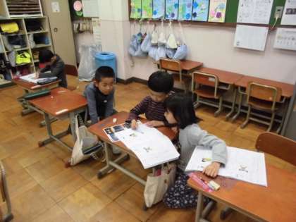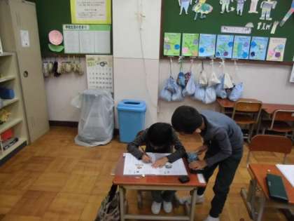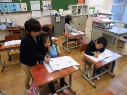漢字の練習をお互いに見合って、正しくきれいな字を書こうと頑張っていました。