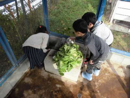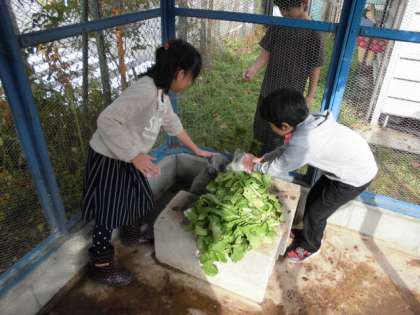 うさぎ当番のことを家で話しています。エサになるものを何か伝えて、用意してもらったエサをやっています。学校での活動の話を家ですること、学校へ持っていくものの準備協力をしてもらうことは、学習問題の自力解決につながります。そのためのコミュニケーション力育成にもなります。ただ、めんどくさい当番をさせられているのとは違います。生き物の世話をすることで、命の大切さを考えることにつながります。