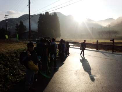 雨上がりの朝の集団登校。子どもたちはまぶしい日差しを浴びて学校に向かいます。季節の変わり目で、せきをしたり鼻をぐずぐずいわせたりしている子もいます。うまく体調をコントロールできるように、手洗い、うがい、十分な睡眠を心がけましょう。