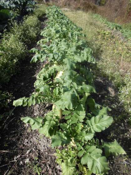 虫に食われ、ぼろぼろになっていた大根も、何とか元気を取り戻して、大きくなってきました。