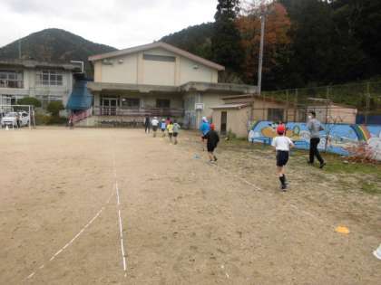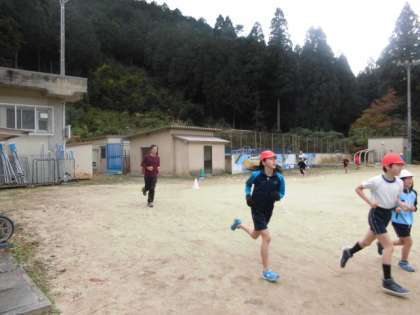 中間マラソンスタートしました。10分間、1周100mのコースを走ります。20周をこえるぐらい走れる児童もいます。